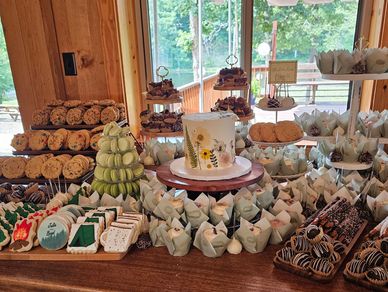 Full wedding dessert spreads are a great way to get an assortment of sweets for your guests to enjoy! Options available are cupcakes, mini cupcakes, truffles, brownie bites, cookies, cake pops, mousse shooters, mini tarts, cheesecake bites, chocolate covered strawberries, macarons, and more! Pricing is $7.75 per guest, this pricing includes all necessary stands and display items for the desserts. A $75 refund will be given when stands are returned.